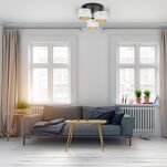 Ta lampa sufitowa łączy w sobie nowoczesny styl z klasyczną elegancją. Czarna konstrukcja nadaje jej wyrafinowanego wyglądu, podczas gdy białe abażury dodają subtelnego kontrastu, który rozjaśnia każde pomieszczenie.